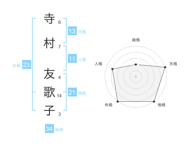 寺村 友歌子さんの外格は23画の5点!