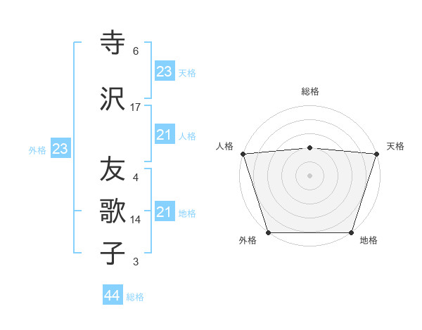 寺沢 友歌子さんの外格は23画の5点!