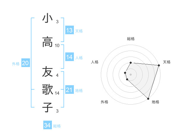 小高 友歌子さんを姓名の画数から五運を鑑定