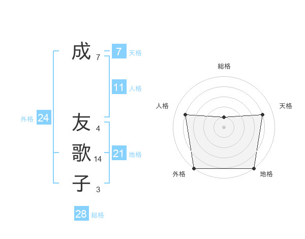 成 友歌子さんの外格は24画の5点!