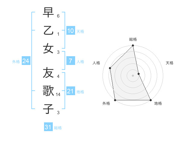 早乙女 友歌子さんの総格は31画の5点!