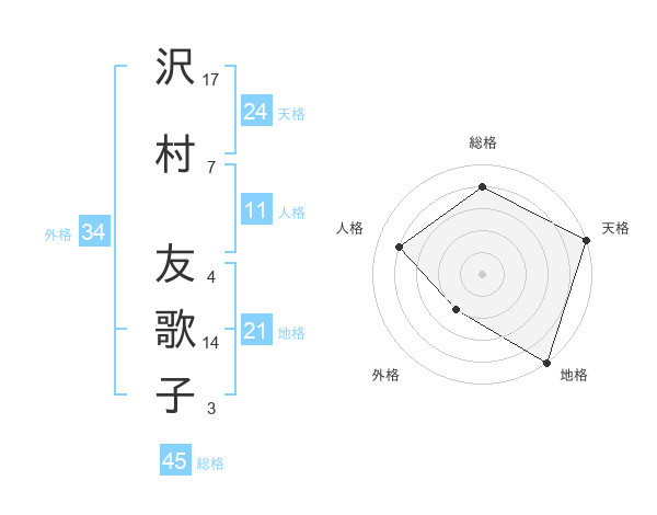 沢村 友歌子さんを姓名の画数から五運を鑑定