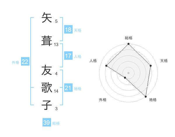 矢葺 友歌子さんの総格は39画の5点!