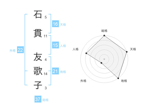 石貫 友歌子さんの総格は37画の5点!