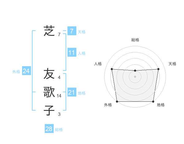 芝 友歌子さんを姓名の画数から五運を鑑定