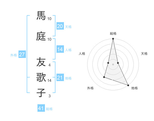 馬庭 友歌子さんの総格は41画の5点!