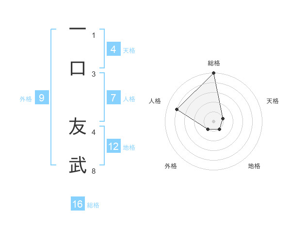一口 友武さんの総格は16画の5点!