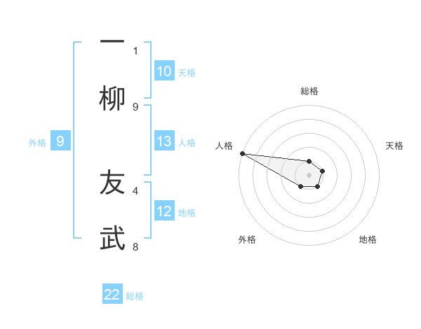 一柳 友武さんの総格は22画の1点!