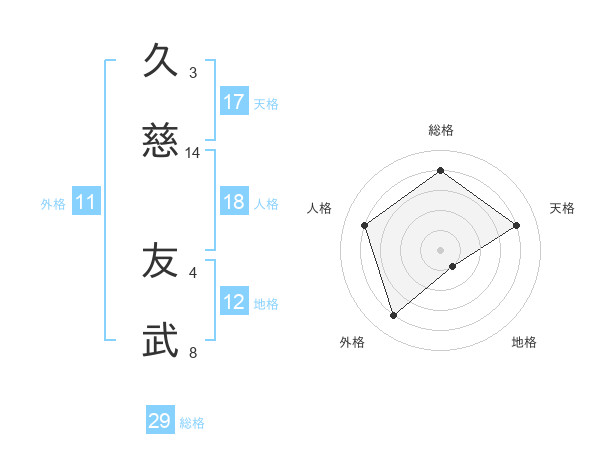 久慈 友武さんの天格は17画の4点!