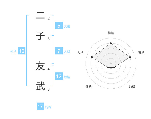 二子 友武さんの総格は17画の4点!