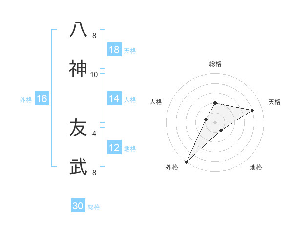 八神 友武さんの総格は30画の2点!