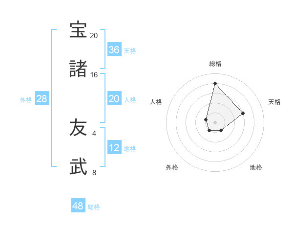 宝諸 友武さんを姓名の画数から五運を鑑定