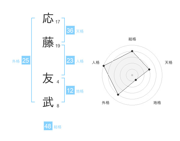 応藤 友武さんの外格は25画の4点!