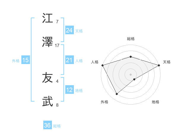 江澤 友武さんの天格は24画の5点!
