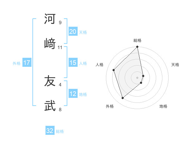 河﨑 友武さんを姓名の画数から五運を鑑定