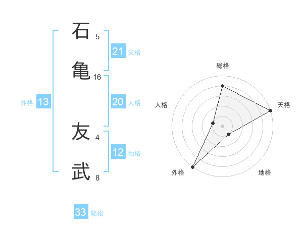 石亀 友武さんの天格は21画の5点!