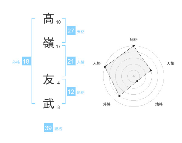 髙嶺 友武さんの総格は39画の5点!