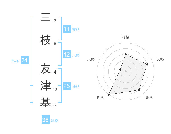 三枝 友津基さんを姓名の画数から五運を鑑定
