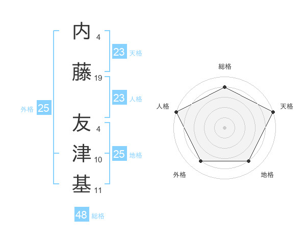 内藤 友津基さんの天格は23画の5点!