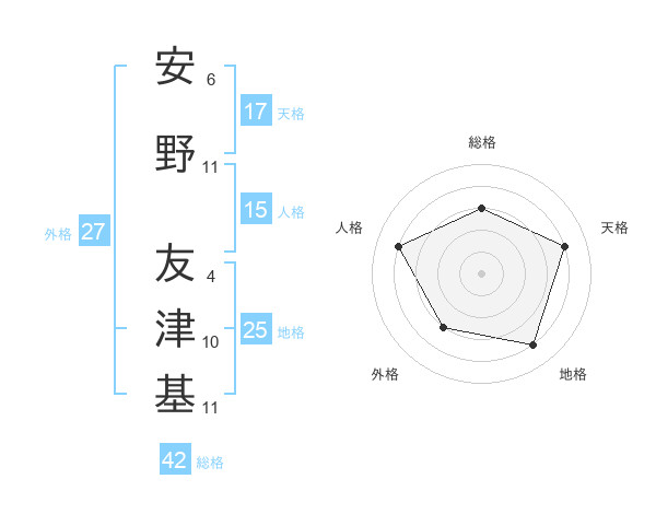 安野 友津基さんの天格は17画の4点!
