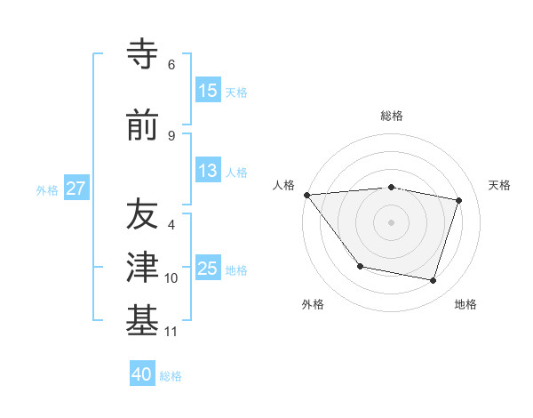 寺前 友津基さんの天格は15画の4点!