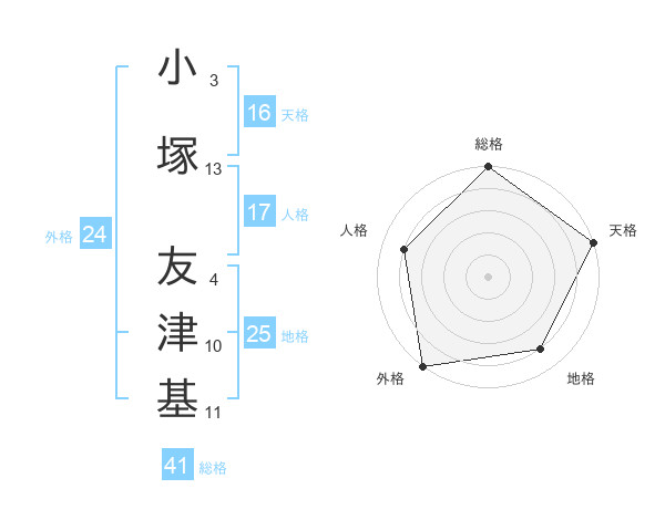 小塚 友津基さんを姓名の画数から五運を鑑定