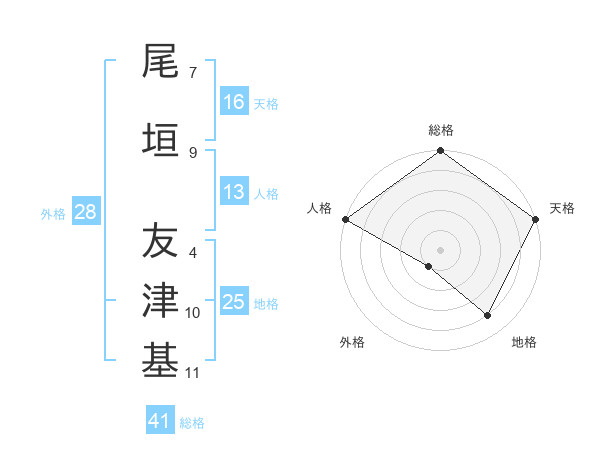 尾垣 友津基さんの天格は16画の5点!