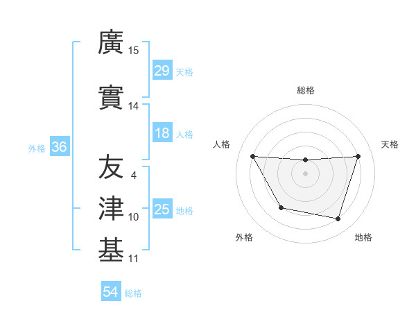 廣實 友津基さんを姓名の画数から五運を鑑定