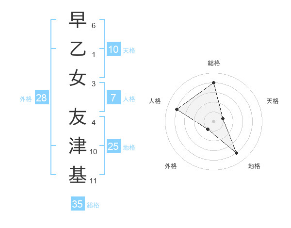 早乙女 友津基さんの総格は35画の4点!