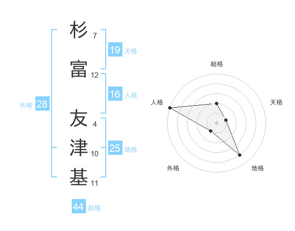 杉富 友津基さんを姓名の画数から五運を鑑定