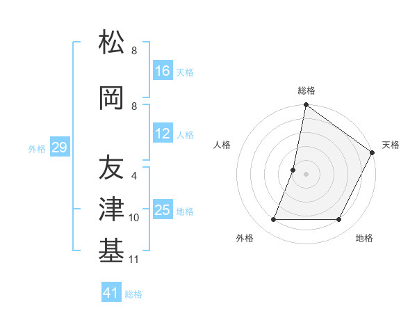 松岡 友津基さんを姓名の画数から五運を鑑定