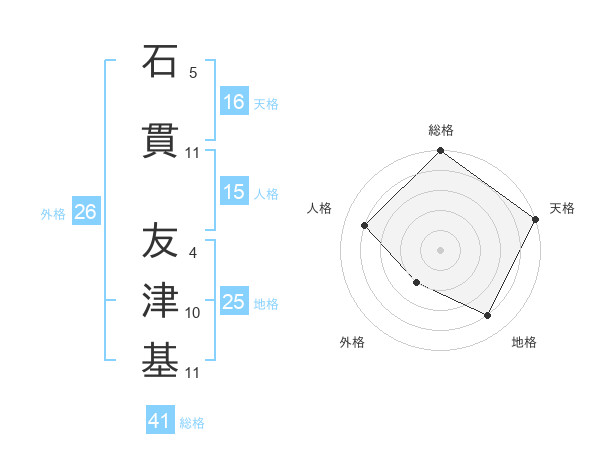 石貫 友津基さんの天格は16画の5点!