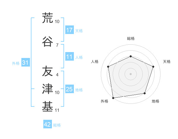 荒谷 友津基さんの外格は31画の5点!