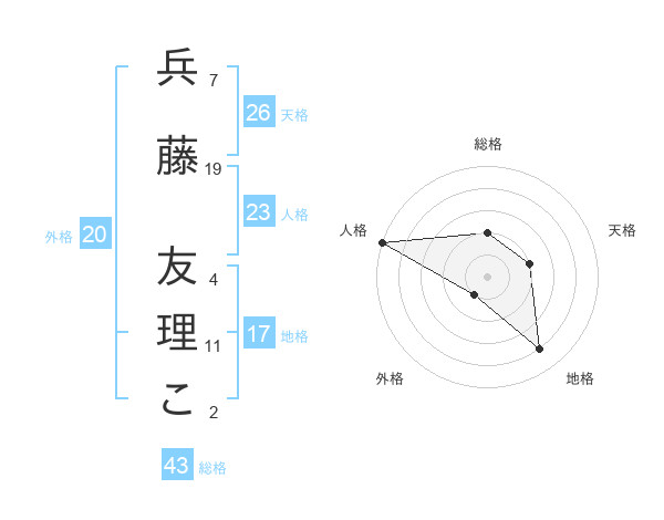 兵藤 友理こさんを姓名の画数から五運を鑑定