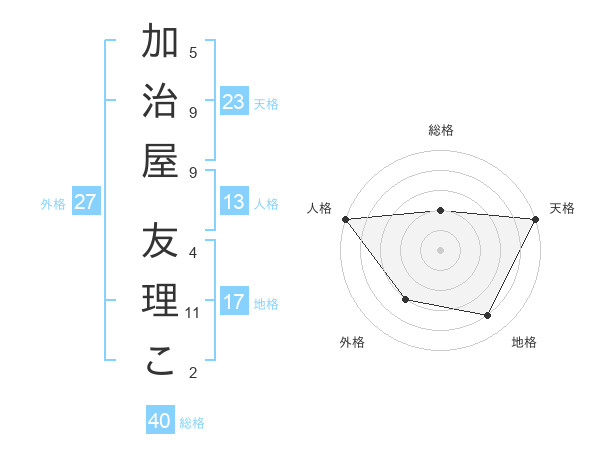 加治屋 友理こさんを姓名の画数から五運を鑑定