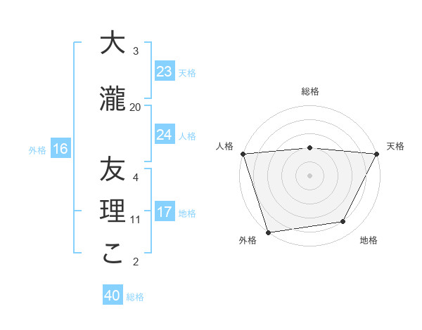 大瀧 友理こさんを姓名の画数から五運を鑑定
