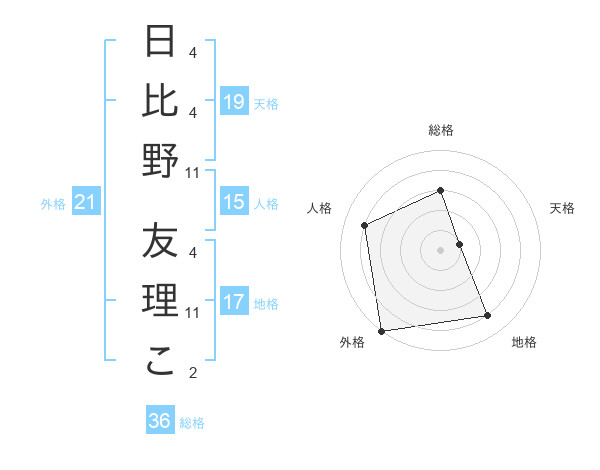 日比野 友理こさんを姓名の画数から五運を鑑定