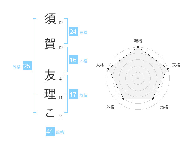 須賀 友理こさんを姓名の画数から五運を鑑定