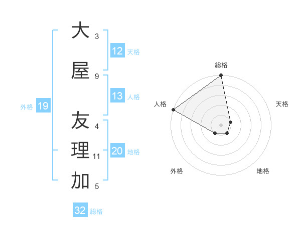 大屋 友理加さんを姓名の画数から五運を鑑定