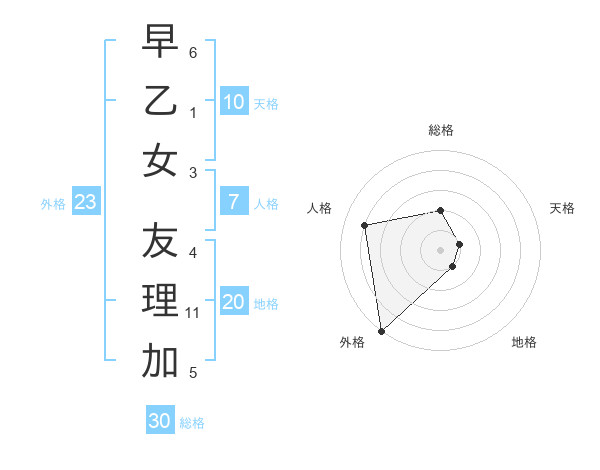 早乙女 友理加さんを姓名の画数から五運を鑑定