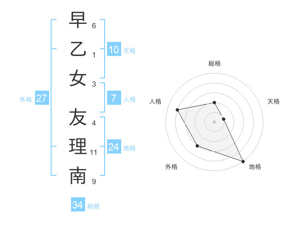 早乙女 友理南さんの総格は34画の2点!