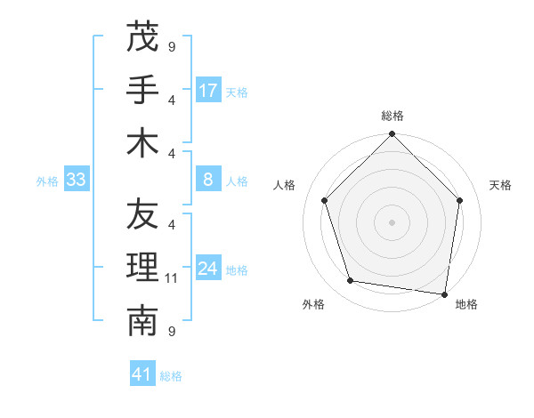 茂手木 友理南さんを姓名の画数から五運を鑑定
