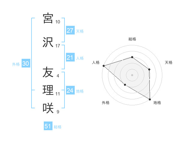 宮沢 友理咲さんを姓名の画数から五運を鑑定
