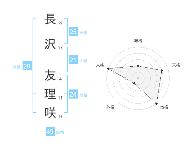 長沢 友理咲さんを姓名の画数から五運を鑑定