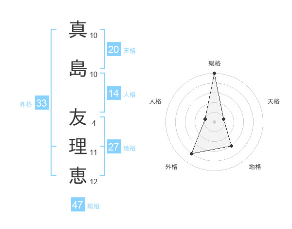 真島 友理恵さんを姓名の画数から五運を鑑定