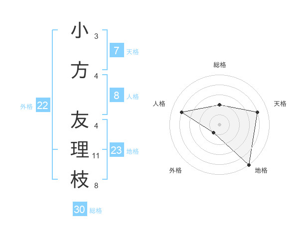 小方 友理枝さんを姓名の画数から五運を鑑定