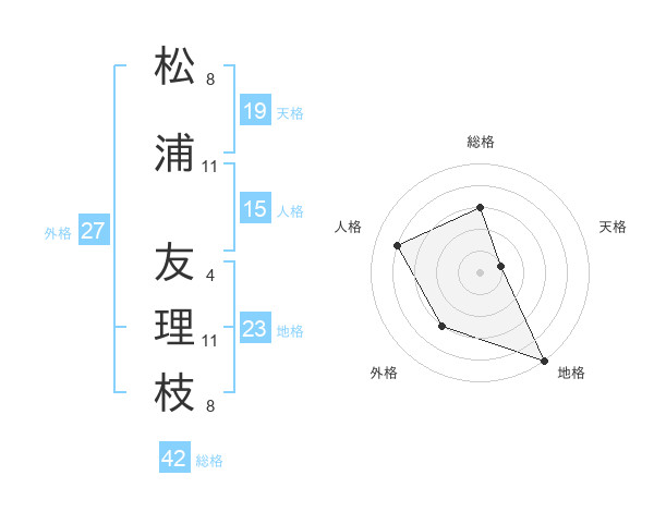 松浦 友理枝さんを姓名の画数から五運を鑑定