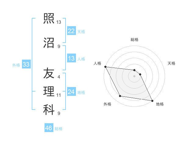 照沼 友理科さんを姓名の画数から五運を鑑定