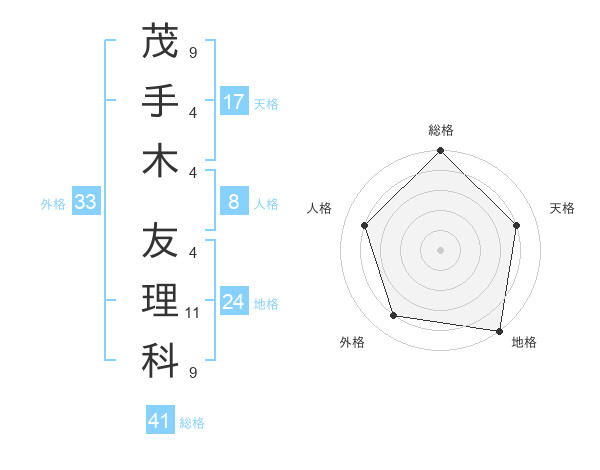茂手木 友理科さんを姓名の画数から五運を鑑定
