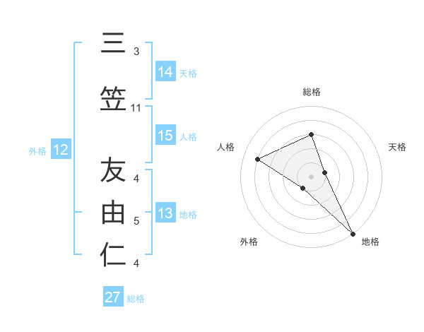 三笠 友由仁さんを姓名の画数から五運を鑑定